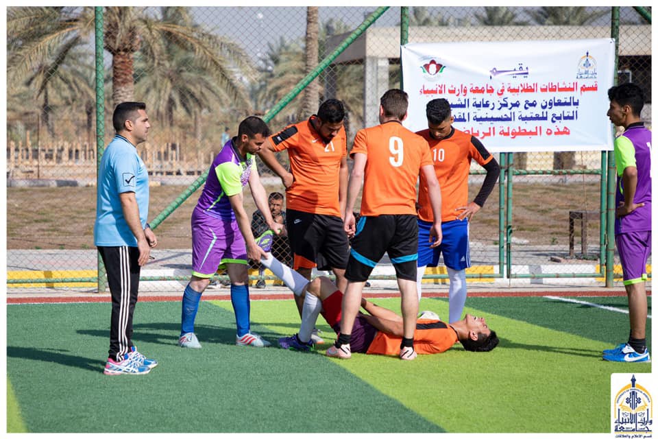 اختتم قسم النشاطات الطلابية في جامعة وارث الانبياء(عليه السلام) بطولة تشرين الكروية الخاصة بالأساتذة والموظفين، حيث كانت انطلاقة المباراة النهائية بقراءة سورة الفاتحة ترحماً على ارواح الشهداء الذين سقطوا في ساحات التظاهر السلمية، وجرت المباراة النهائية بين فريق كلية العلوم الاسلامية وفريق بناية العُلى (الرئاسة) والتي انتهت بفوز فريق العلوم الاسلامية بركلات الترجيح، يذكر ان هذه البطولة الرياضية التي اقامها قسم النشاطات الطلابية في الجامعة كانت بالتعاون مع مركز رعاية الشباب التابع للعتبة الحسينية المقدسة.