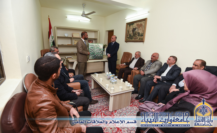 زار وفد من جامعة كربلاء جامعة وارث الانبياء من اجل تبادل الخبرات وفتح افاق التعاون بين الجامعتين حيث قدم رئيس الوفد الدكتور علي كريم خضير عميد كلية التمريض في جامعة كربلاء التهاني للجامعة وخص الدكتور خميس بندرعبيد عميد كلية التمريض في جامعة وارث الانبياء بلتبريكات متمنيا له وللجامعة كل التوفيق في مسيرتهم العلمية خدمة للمجتمع