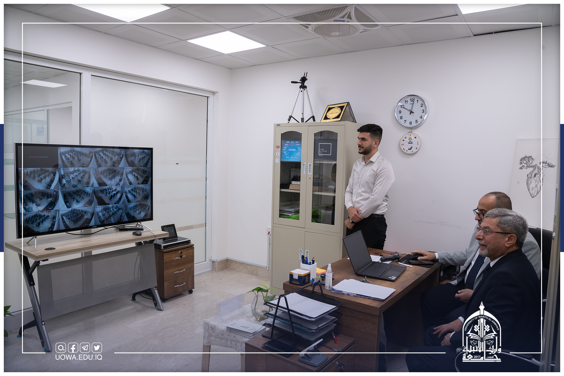 اذ تم اكمال غرفة السيطرة والمتابعة الالكترونية للقاعات الامتحانية الحضورية، لتلبي احتياجات الكلية.