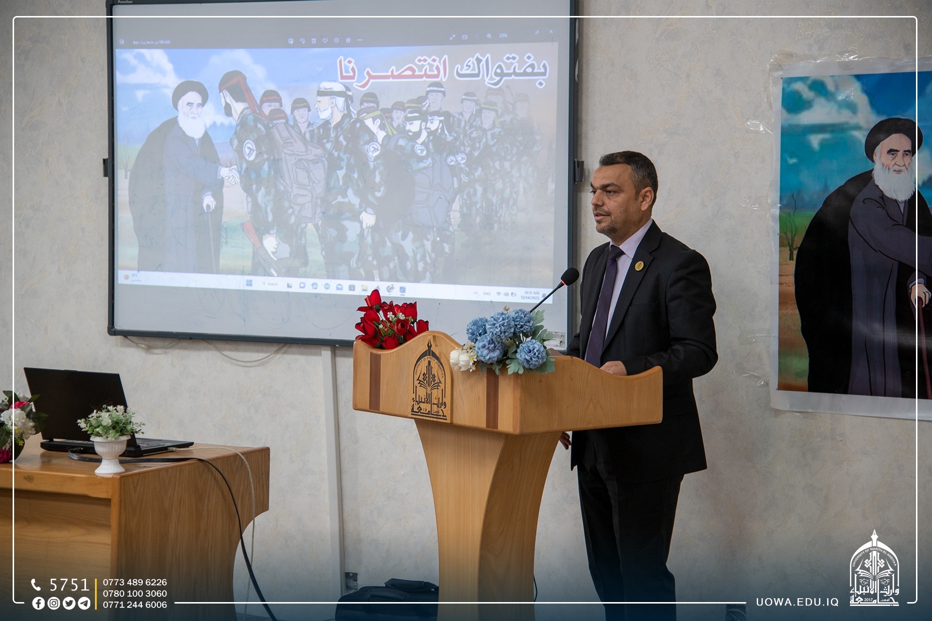 برعاية السيد رئيس الجامعة الاستاذ الدكتور ابراهيم الحياوي وبإشراف عميد كلية الهندسة الاستاذ الدكتور واقد الموسوي أقامت كلية الهندسة في جامعة وارث الانبياء (عليه السلام) حفلاً بمناسبة يوم النصر العراقي ضد العصابات الإرهابية.