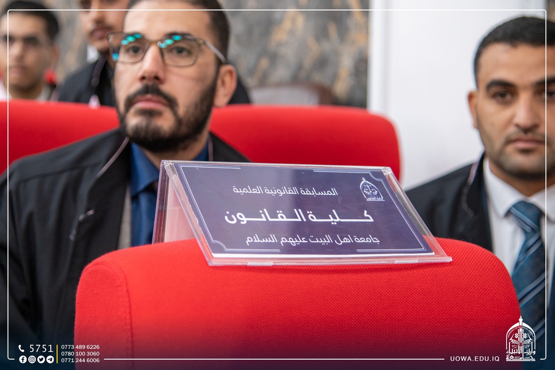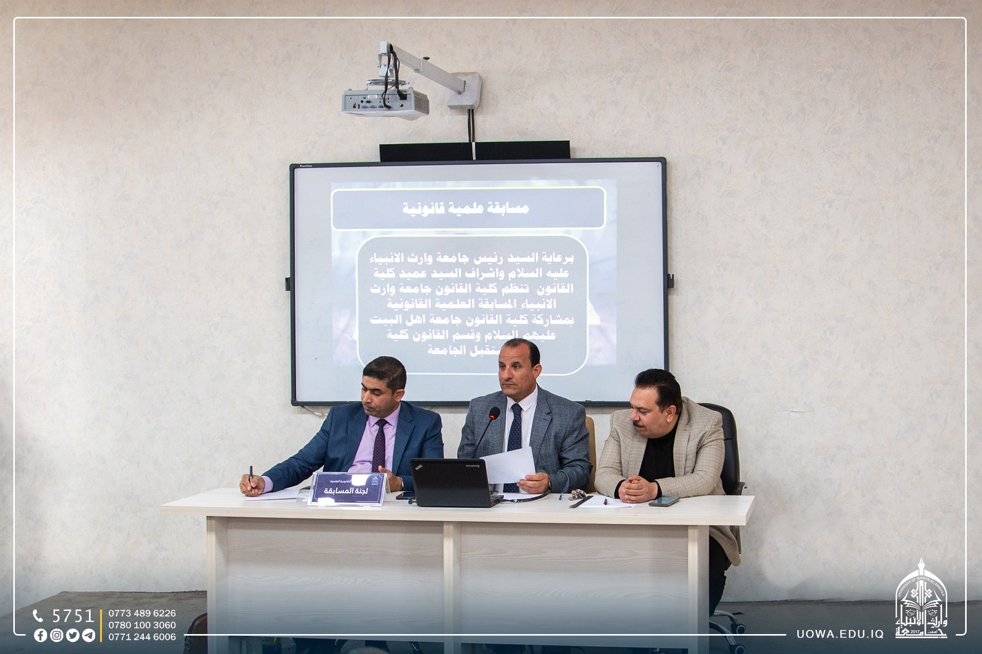 "مسابقتها العلمية القانونية الاولى" بين فرق جامعة وارث الانبياء، وجامعة اهل البيت، وفريق كلية المستقبل الجامعة.