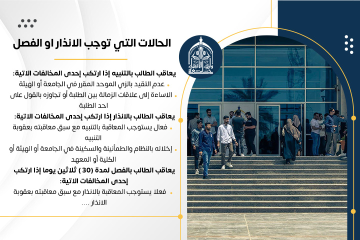 - يعاقب الطالب بالانذار إذا ارتكب إحدى المخالفات الاتية: