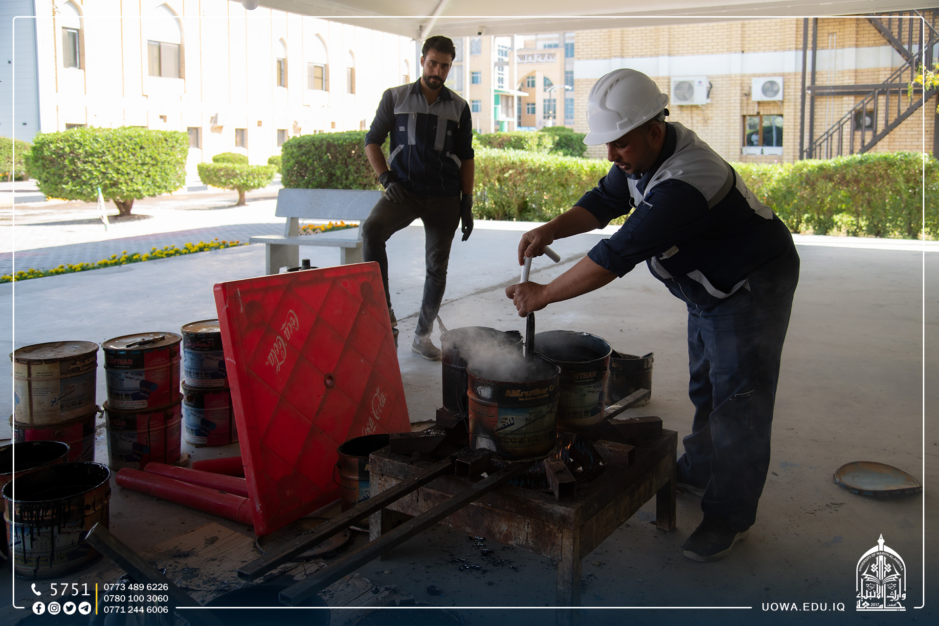 ملاك قسم الديوان أثناء اعمال تأهيل مسقف الجامعة