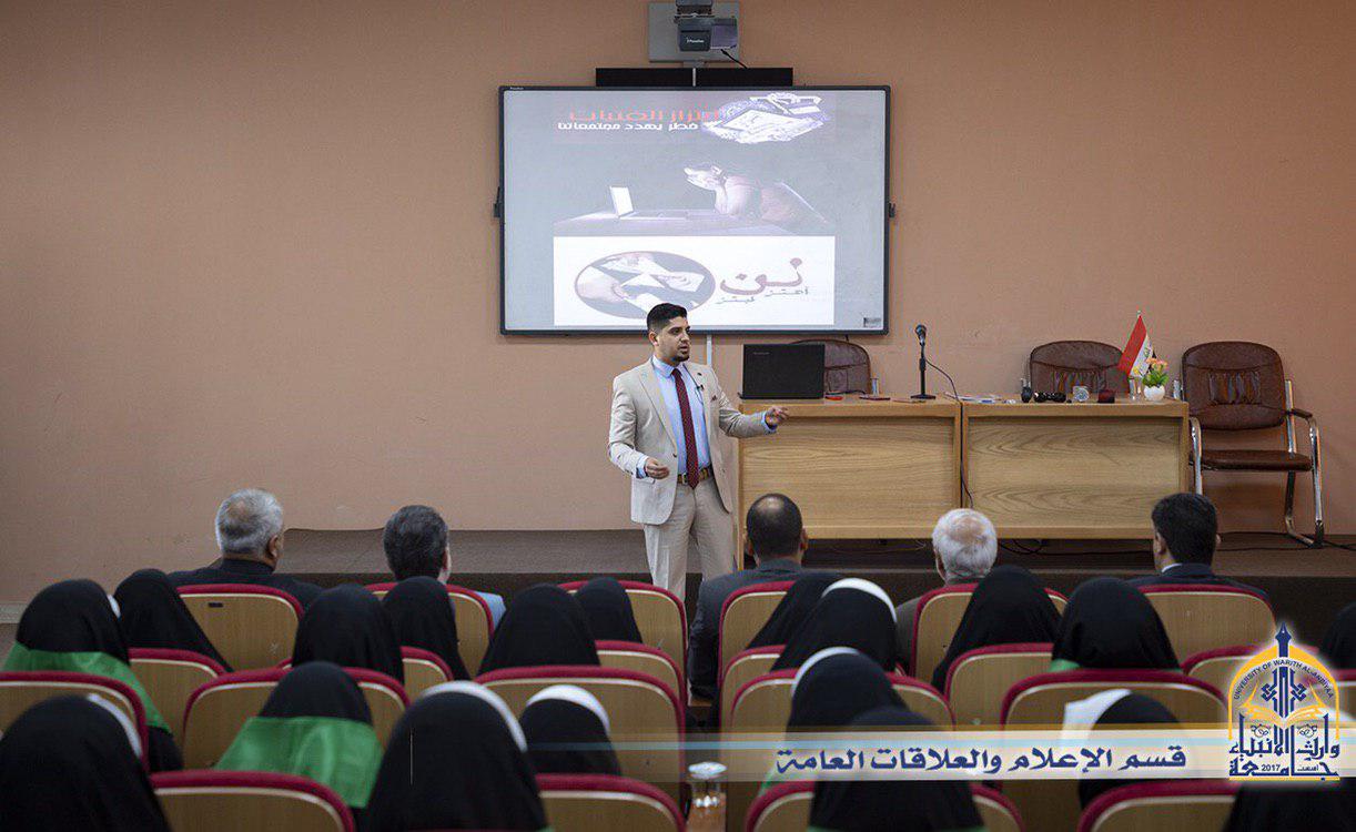 بالتعاون بين قسم النشاطات الطلابية في جامعة وارث الانبياء (عليه السلام) ومؤسسة الامام الرضا (عليه السلام) الخيرية وبالتنسيق مع مديرية الامن الوطني في كربلاء وبحضور الاستاذ الدكتور طالب حسن موسى رئيس الجامعة والسيد المساعد العلمي  اقيمت يوم الاربعاء 24/4/2019  ندوة تثقيفية حول جريمة الابتزاز الالكتروني التي انتشرت وبشكلاً كبير في الاونة الاخيرة
