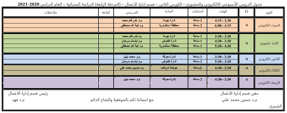 اجتمعت اللجنة المشكلة بموجب الامر الاداري المرقم (م. ع. ا/٤٥ في ١٦/٣/٢٠٢١) والمتألفه من د. صالح مجيد رئيساً وعضويه كلاًَ من م. ياسمين قاسم بيده و م.م صلاح مهدي عباس للنظر في الاعتراضات المقدمة من قبل مجموعة من الطلبة على نتائج الكورس الاول للعام الدراسي 2020/ 2021 لقسم ادارة الاعمال وكانت نتائج الاعتراض جميعها مطابقة، ما عدا الطالبة زهراء عبدالكاظم في المرحلة الثالثة - الدراسة الصباحية ، فكانت نتيجة الاعتراض متوسط وليس مقبول في مادة اقتصاديات الاعمال.