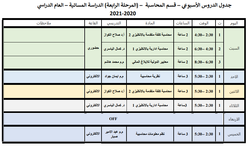 اجتمعت اللجنة المشكلة بموجب الامر الاداري المرقم (م. ع. ا/٤٥ في ١٦/٣/٢٠٢١) والمتألفه من م.د محمد مجيد جواد رئيساً والعضويه م.م عبدالامير صبار خشيف للنظر في الاعتراضات المقدمة من قبل مجموعة من الطلبة على نتائج الكورس الاول للعام الدراسي 2020/ 2021 لقسم المحاسبة وكانت نتائج الاعتراض جميعها مطابقة.