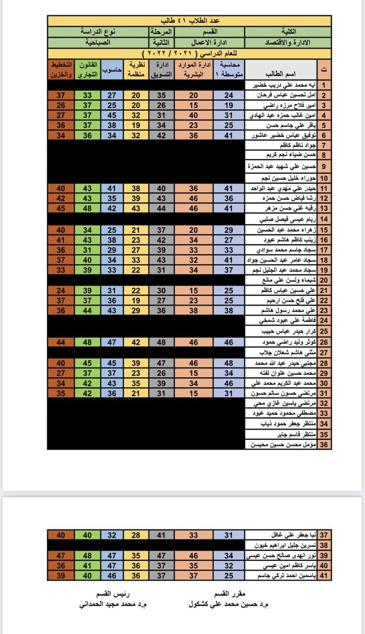سعيات الكورس الاول لطلبة قسم ادارة الاعمال مرحلة ثانية