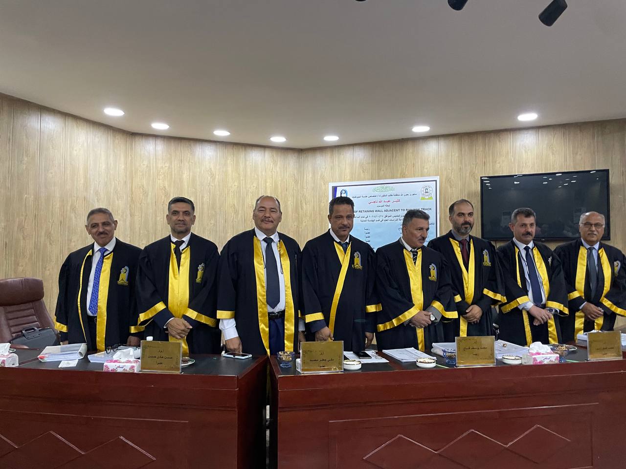 اختيار عميد كلية الهندسة الاستاذ المساعد الدكتور حسين هادي العوادي عضو مناقشة اطروحة الكتوراه في الجامعة التكنلوجية في قسم الهندسة المدنية في اختصاص هندسة الجيوتكنيك بعنوان