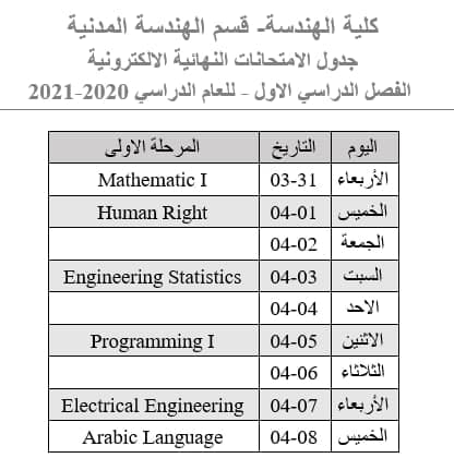 نرفق أليكم جداول الامتحانات الإلكترونية لجميع الأقسام العلمية