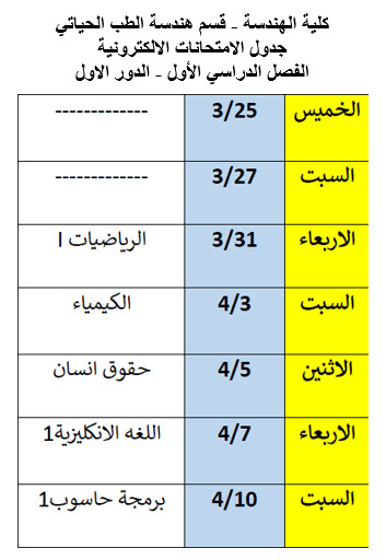 جداول الامتحانات الالكترونية للمرحلة الاولى