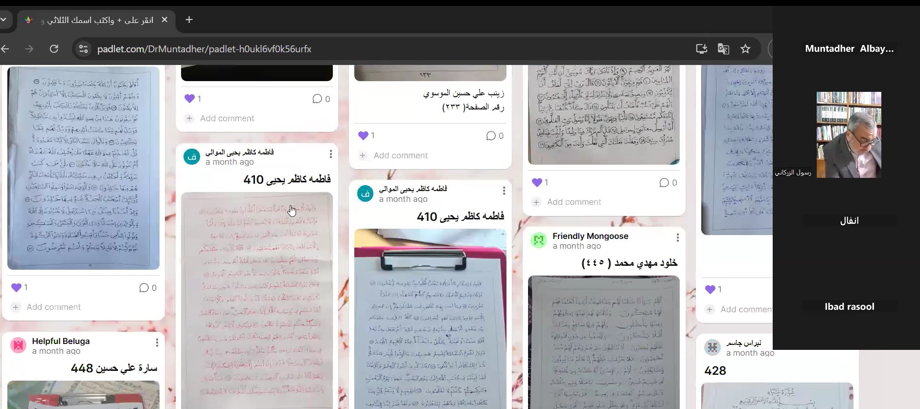كلية العلوم الإسلامية تقيم الورشة الثالثة لمشروع "كلمات من النور" لتصحيح التمارين ومراجعة الأداء عبر الإنترنت