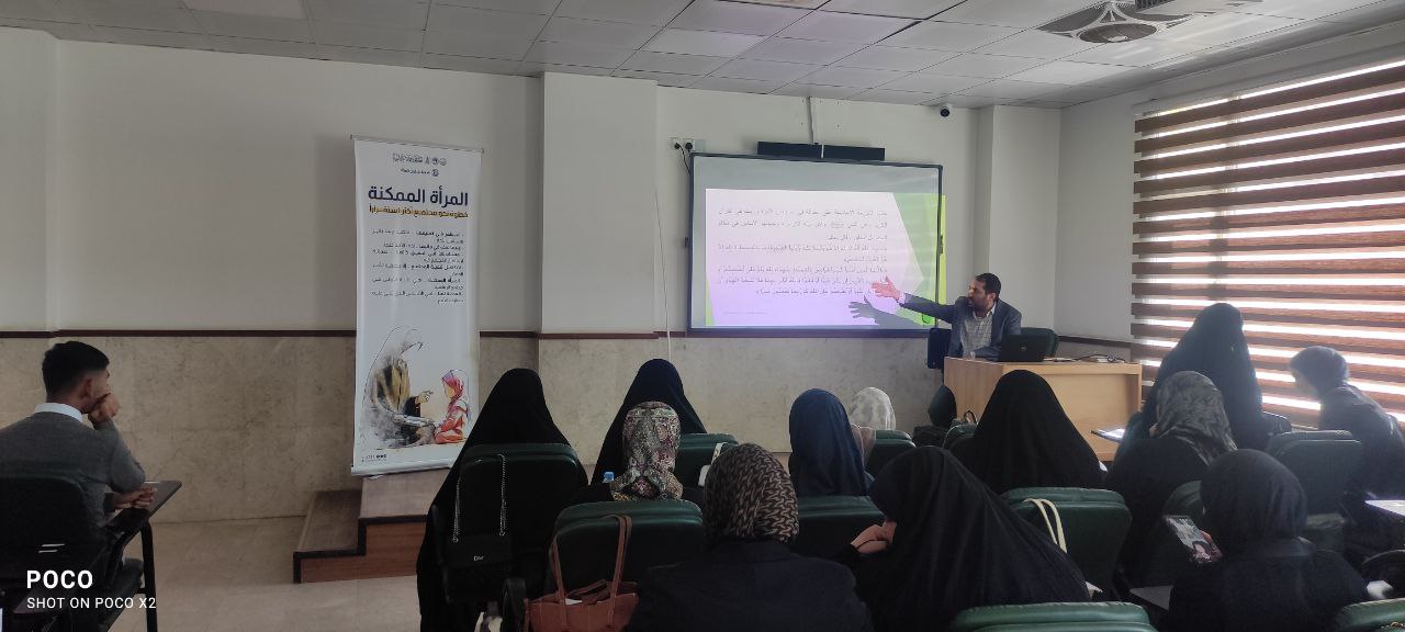 واستهدفت الورشة طلبة كلية العلوم الإسلامية، وقدّمها م.م مرتضى محمد علي آل تاجر، متناولًا مفهوم العدالة في الإسلام بشقّيها المادي والمعنوي، ودور التشريعات الإسلامية في ترسيخ العدالة والمساواة وصون الحقوق الإنسانية.