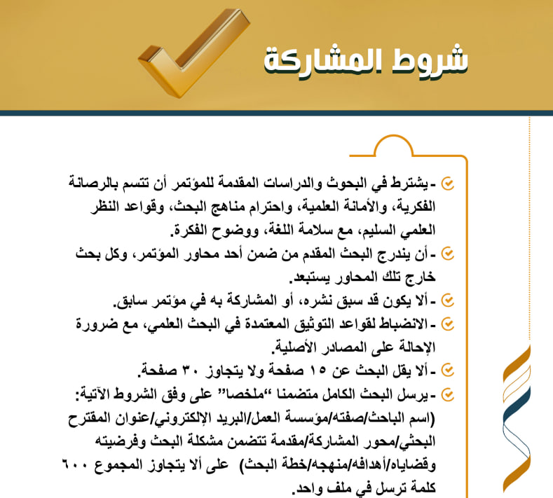 - آخر موعد لاستلام البحوث الكاملة: 24 فبراير 2024.