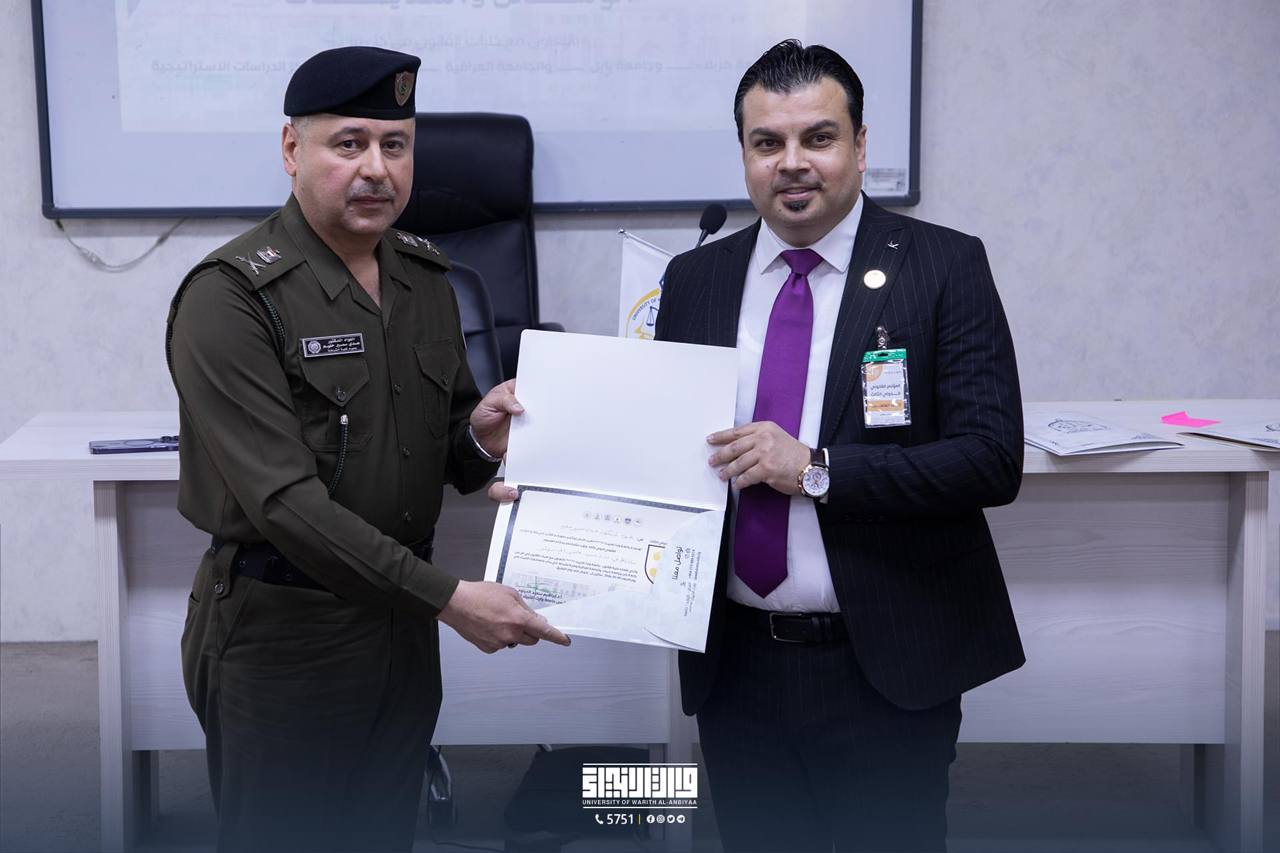 اختتام الجلسات البحثية " للمؤتمر العلمي الدولي الثالث" الذي اقامته كلية القانون في جامعة وارث الانبياء(عليه السلام)، إذ شهدت هذه الجلسات حوارات هادفة وإثراءات غنية انتفع منها الباحثين والحضور على حد سواء حيث كرم السيد عميد كلية القانون أ.م.د. علي صاحب الشريفي مدير كلية الشرطة اللواء أ.د. عدي سمير الحساني