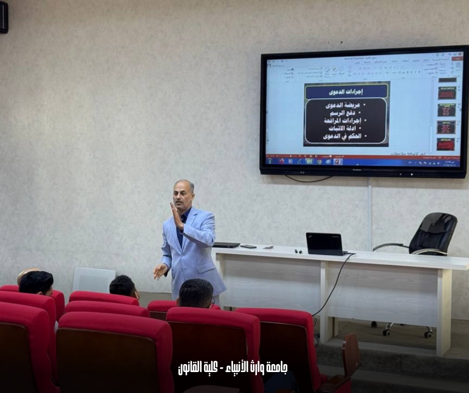 وتأتي هذه المحاضرة ضمن سلسلة من الأنشطة العلمية الهادفة إلى تطوير مهارات الطلبة وإعدادهم للممارسة القانونية بشكل عملي وفاعل.