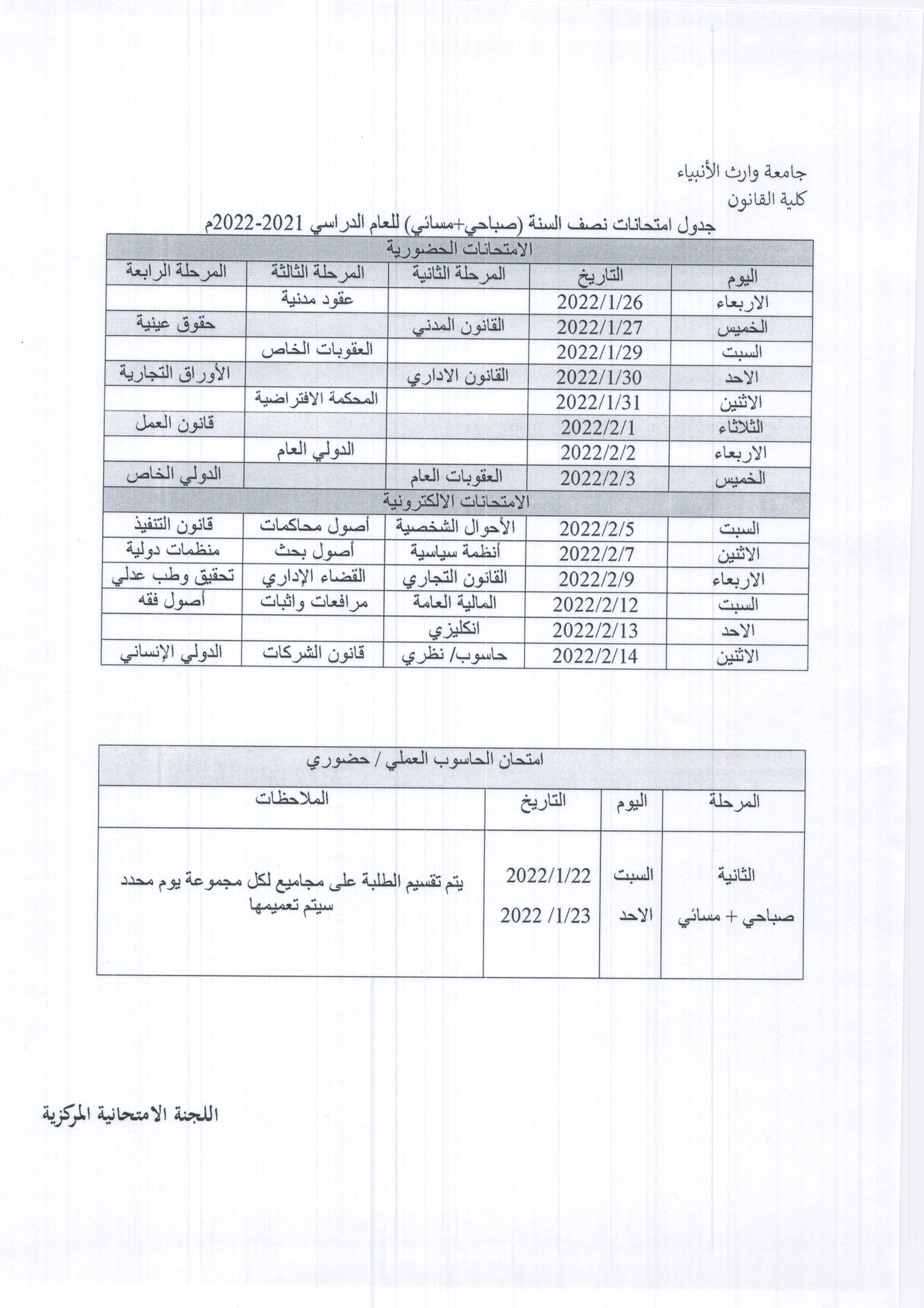 جانب من المراقبات الالكترونية للامتحانات وبأشراف السيد عميد كلية القانون.