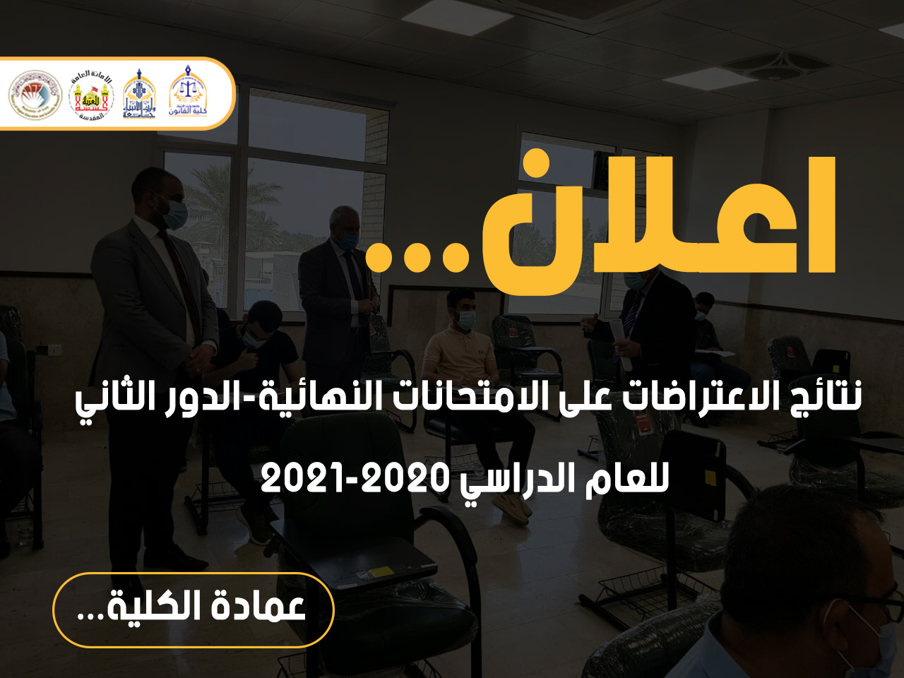 انهت كلية القانون امتحناتها للدور الثاني للعام الدراسي 2020-2021 تحت اشراف السيد عميد كلية القانون .