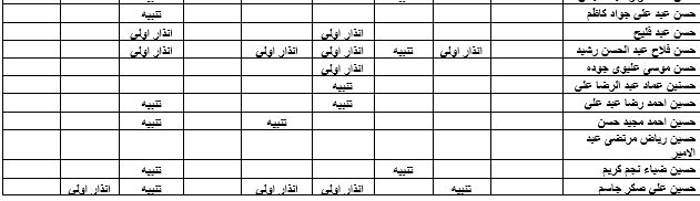 غيابات المرحلة الاولى شعبة(أ)