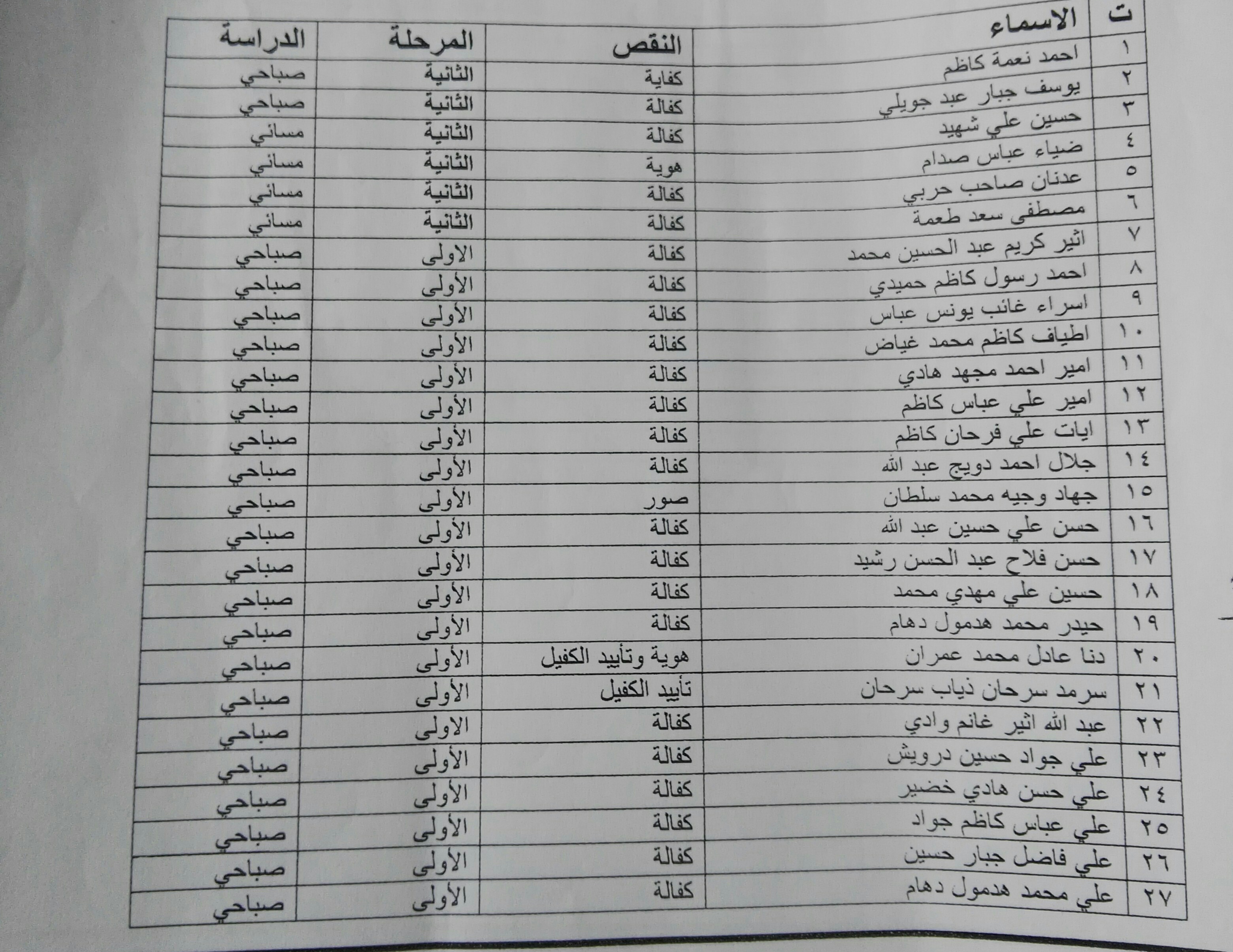 على الطلبة المدرجة اسمائهم مراجعة قسم الشؤون القانونية لاكمال اضابيرهم وبالسرعة الممكنة
