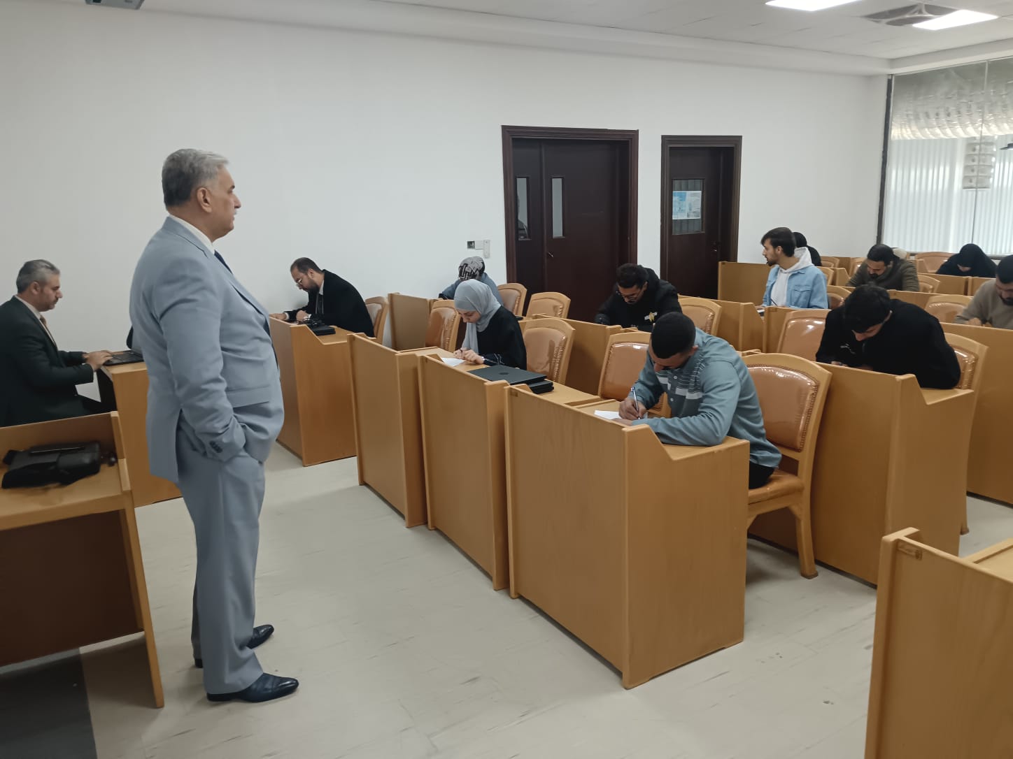 واضاف ان عمادة الكلية قامت بتوفير اجواء مثالية للطلبة لأداء لامتحانات من ناحية توفير قاعات مجهزة بكافة وسائل الراحة.