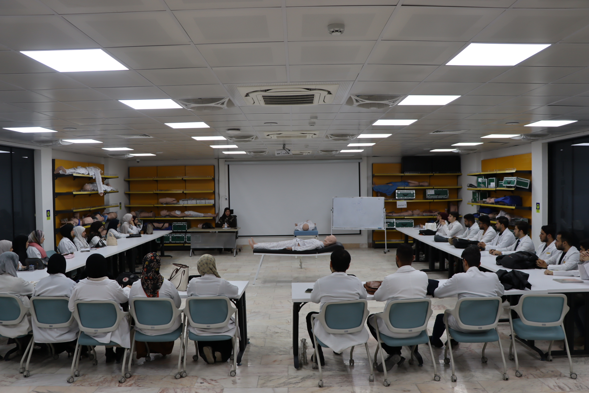 محاضرة علمية في مختبرات الـOSCE لطلبة الدفعة الأولى في كلية الطب – جامعة وارث الأنبياء (ع)