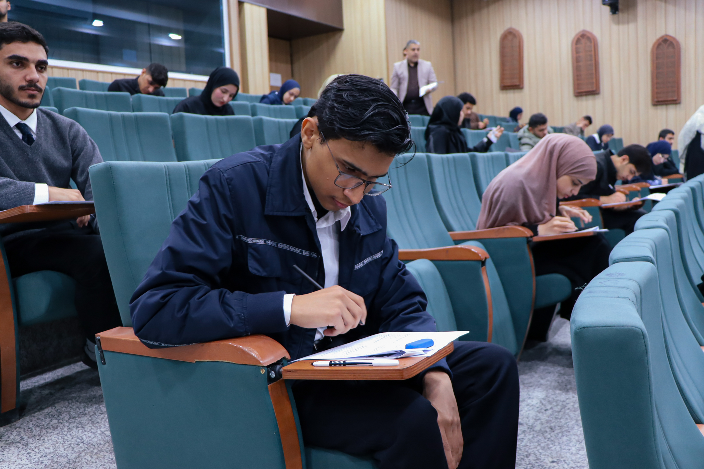 First-year students at the College of Medicine, University of Warith Al-Anbiyaa (PBUH), have undertaken their mid-year examinations as part of the academic schedule for the current academic year, under the direct supervision of the Dean of the College of Medicine, Professor Dr. Ali Abdul Saadoun Al-Ghazzi.