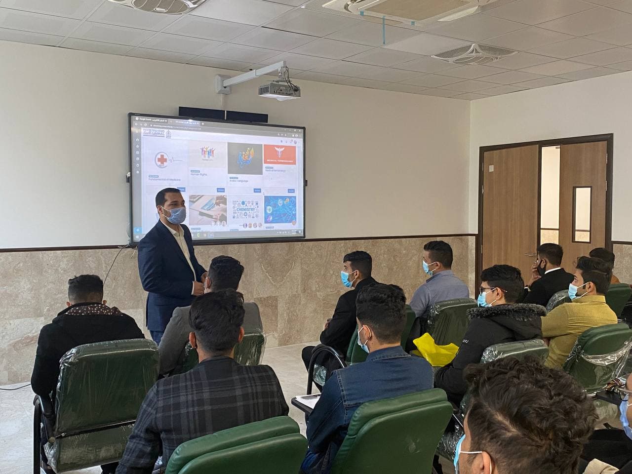بأشراف السيد معاون العميد لكلية الطب المحترم م. د. أسعد عباس اقامت لجنة التعليم الالكتروني في كلية الطب دورة تدريبية لجميع طلبة المرحلة الاولى حول نظام التعليم الالكتروني في جامعة وارث الانبياء ( عليه السلام )