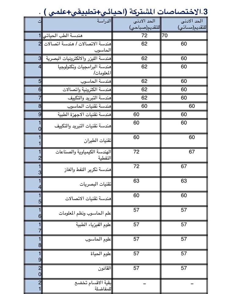 لخريجي العلمي الاحيائي و التطبيقي و الادبي و المهني و التجاري و غيرها.