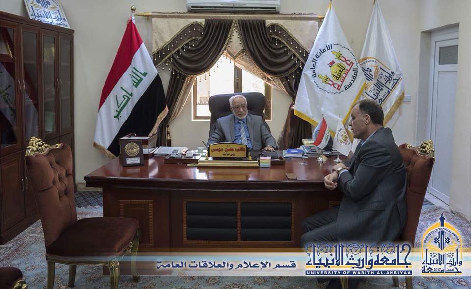 بعد ان ناشدت جامعة وارث الانبياء المعنيين لإنقاذ الجزر الوسطية والمساحات الخضراء التي تقع على طريق بغداد -كربلاء، زار السيد مازن الياسري مدير بلديات كربلاء المقدسة جامعة وارث الأنبياء حيث أعرب عن تجاوبه مع ماجاء في كتاب رئيس الجامعة للعناية بالمساحات الخضراء وجانبي الطريق المحاذية للجامعة ، وأعرب رئيس الجامعة الاستاذ الدكتور طالب حسن موسى عن تقديره وامتنانه لجناب السيد مدير البلديات على هذه الروح الحسينية والاستجابة السريعة منه فله كل الدعاء بالخير والموفقية