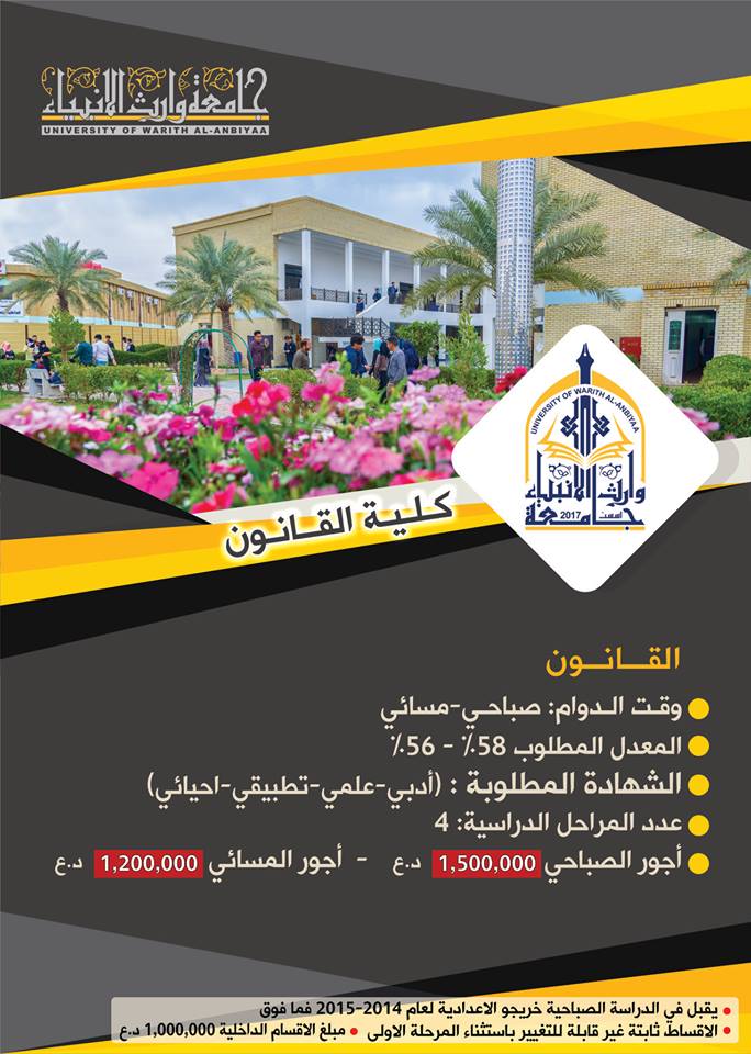 الى طلبتنا الاعزاء في كلية القانون جامعة وارث الانبياء
