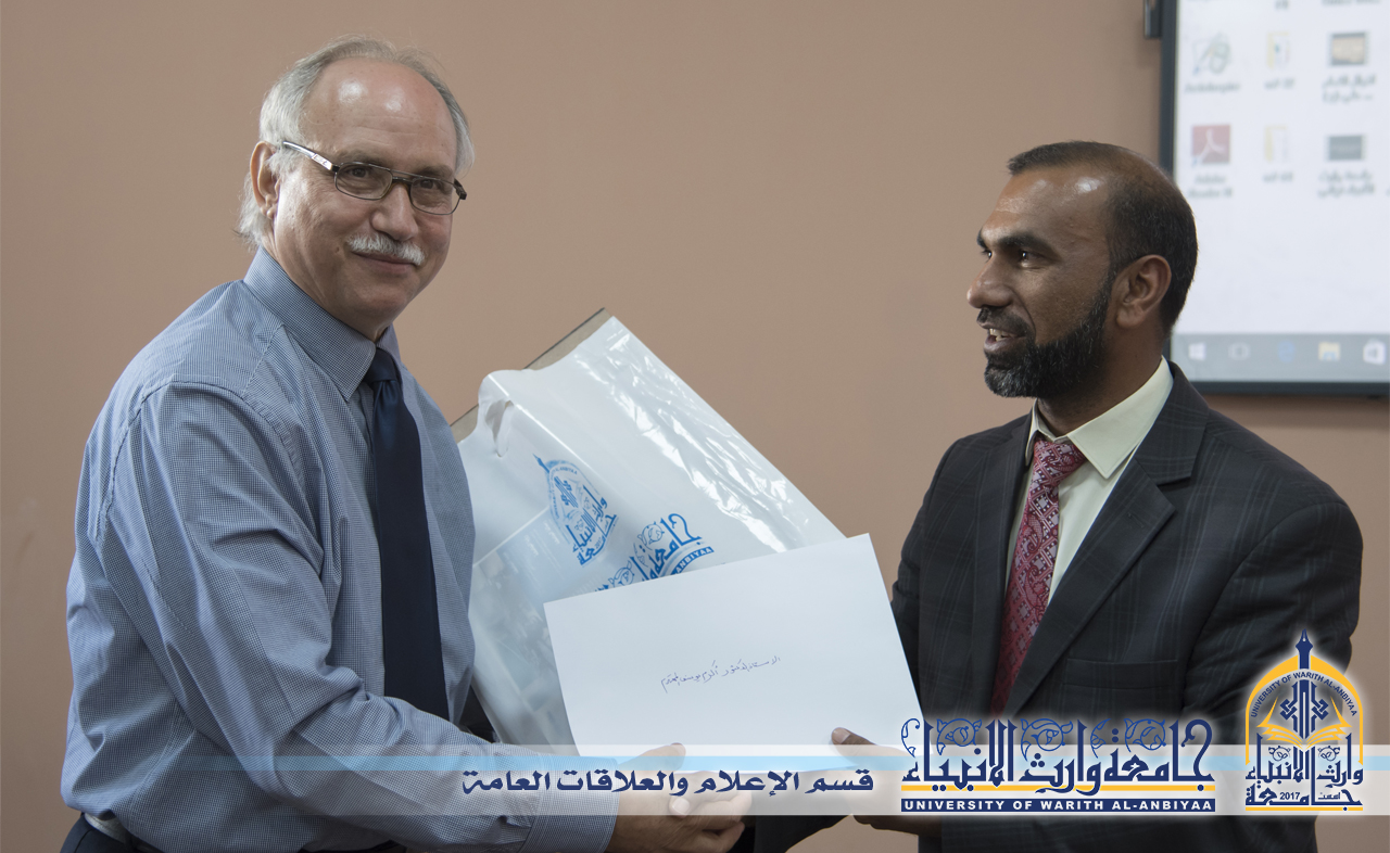 بمبادرة رائعة ملئها روح التعاون وتعبيراً عن فرحتهم الغامرة بالصرح الجامعي الفتي زار جامعة وارث الانبياء وفد من جامعة كربلاء حيث ذكر التدريسي في كلية القانون الدكتور عباس علي محمد الحسيني أن زيارة الوفد جاءت على ضوء أهمية الجامعة الجغرافية والعلمية ولما تحمله من بركات الراعي الاول لها وهو سيد الشهداء (سلام الله عليه) وكذلك وجود كوادر متميزة نحن على دراية كاملة بعلميتها وكفائتها في ادارة مفاصل مهمة في الجامعة متمثلتة بالسيد رئيس الجامعة والمساعد العلمي وعمداء الكليات الاربعة ,وأضاف أن املنا بالمستقبل هو اكتمال الاختصاصات العلمية والانسانية لهذه الجامعة خدمة للطلبة العراقيين, وبين التدريسي في جامعة كربلاء الاستاذ الدكتور باسم العقابي تفائله بالمستقبل الواعد لجامعة وارث الانبياء لانها بنيت على اسس علمية رصينة وأبدت تميزا ملحوظ خلال الاوساط الجامعية من حيث توفير المستلزمات المادية والبشرية, وأبدى الوفد شكره لما شهده من كرم الضيافة وحفاوة الاستقبال ودعى بالتوفيق للجامعة ولكوادرها بالازدهار والتميز , وعلى هامش الزيارة تسلم الضيوف شهادات شكر وتقدير من سيادة رئيس الجامعة لما أبدوه من روح تعاون عالية ومساهمة فاعلة في سمو العلم والمعرفة خدمة للعراق , علما أن الدكتور عباس الحسيني شغل منصب المستشار الثقافي الإقليمي لجمهورية العراق في لبنان والدكتور باسم العقابي شغل منصب المدير العامِّ للأكاديميَّة العراقية لمكافحة الفساد .