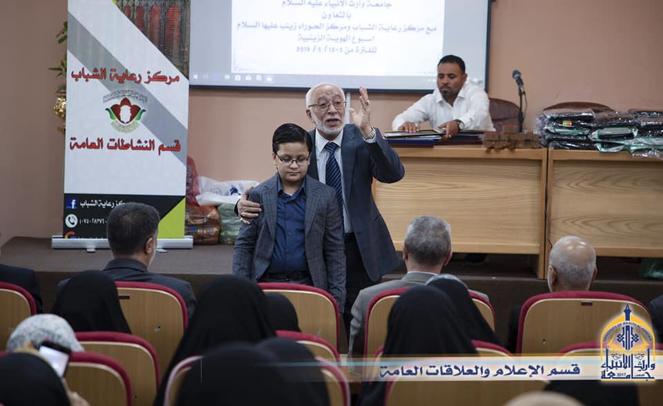 بحضور جناب السيد افضل الشامي رئيس قسم التعليم العالي في العتبة الحسينية المقدسة والسيد رئيس الجامعة الاستاذ الدكتور طالب حسن موسى والسيد المساعد العلمي وبعض السادة عمداء الكليات اختتمت فعاليات (اسبوع الهوية الزينبية) الذي أقامته جامعة وارث الانبياء (عليه السلام) بالتعاون مع مركز رعاية الشباب ومركز الحوراء زينب(عليها السلام) التابعان للعتبة الحسينية المقدسة ، حيث استمر البرنامج للمدة من ٥_١٢ /٥ /٢٠١٩ وتضمن محاضرات تثقيفية وتوعوية وارشادية ومسابقات ثقافية لطالبات الجامعة تشجيعاً وتثقيفاً لهن وحثهن على الحفاظ على هويتهن الزينبية ، تضمن حفل الختام تكريم الطالبات الملتزمات بالحجاب الاسلامي الزينبي ، وقد تحدث السيد رئيس الجامعة الأستاذ الدكتور طالب حسن موسى قائلاً: