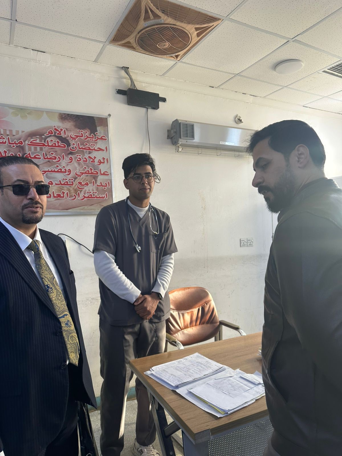 زيارة الدكتور حيدر غالب الابراهيمي معاون العميد للشؤون الادارية الى مستشفى الحسيني