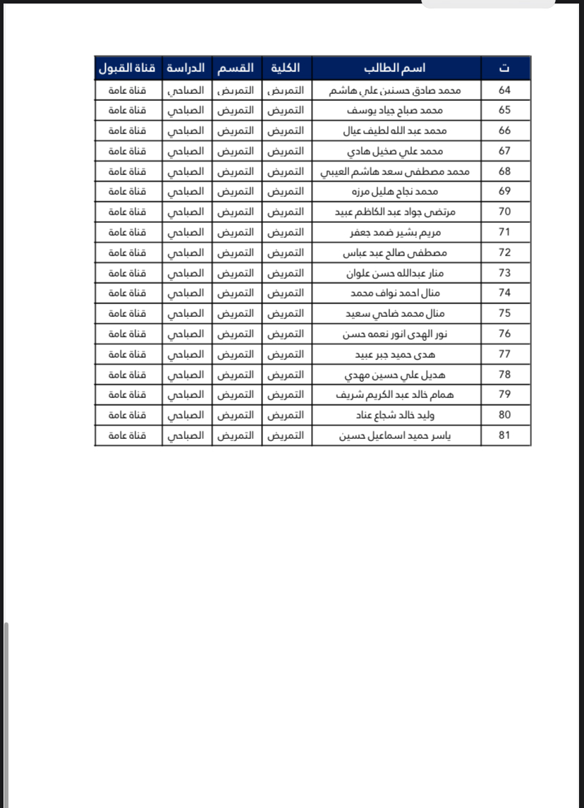 اسماء الطلبة المقبولين في كلية التمريض للعام الدراسي 2024_2025