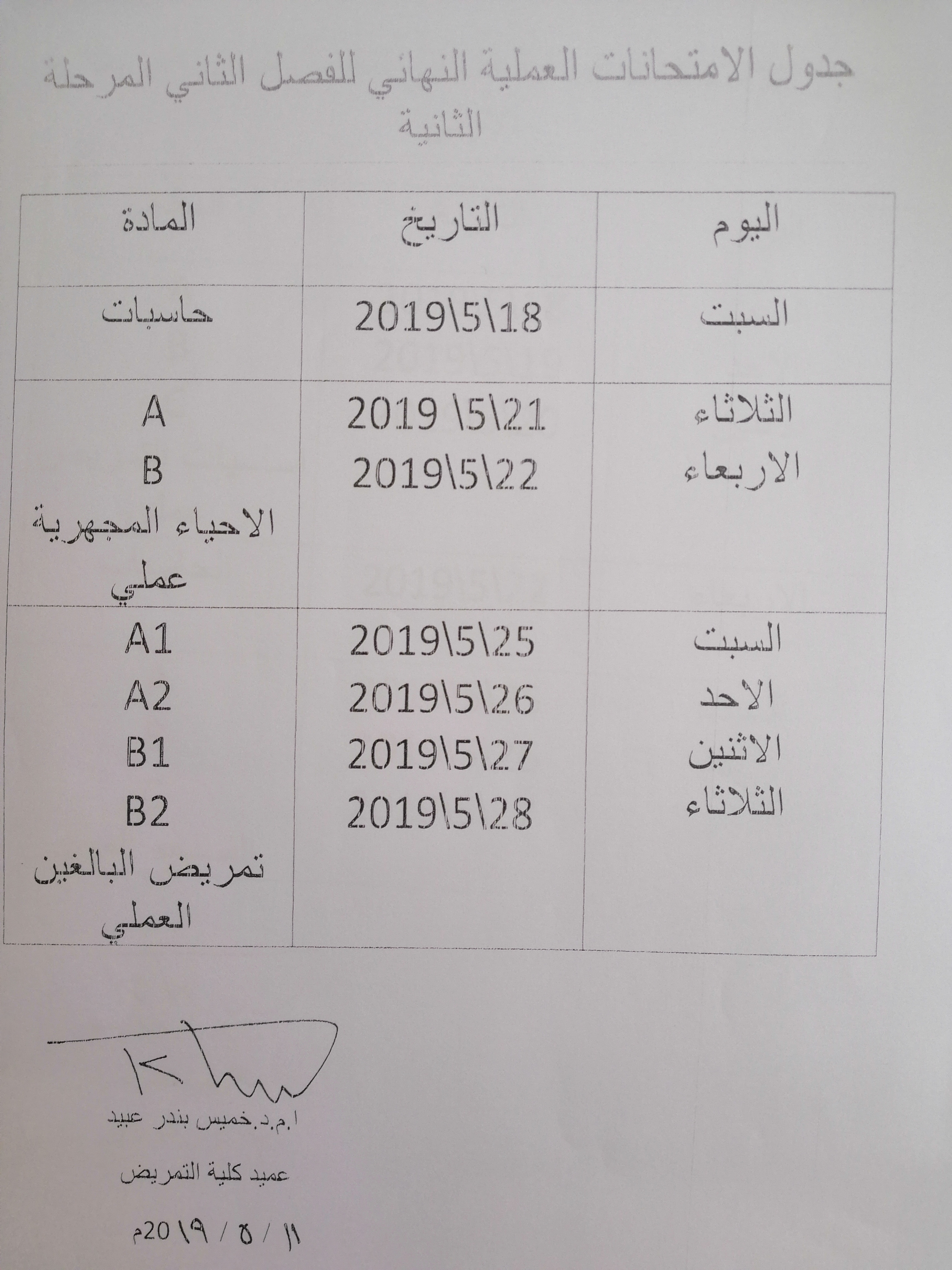 بتأريخ ٨/٥/٢٠١٩ في تمام الساعه ١٠:٣٠ص على قاعة كلية التمريض.