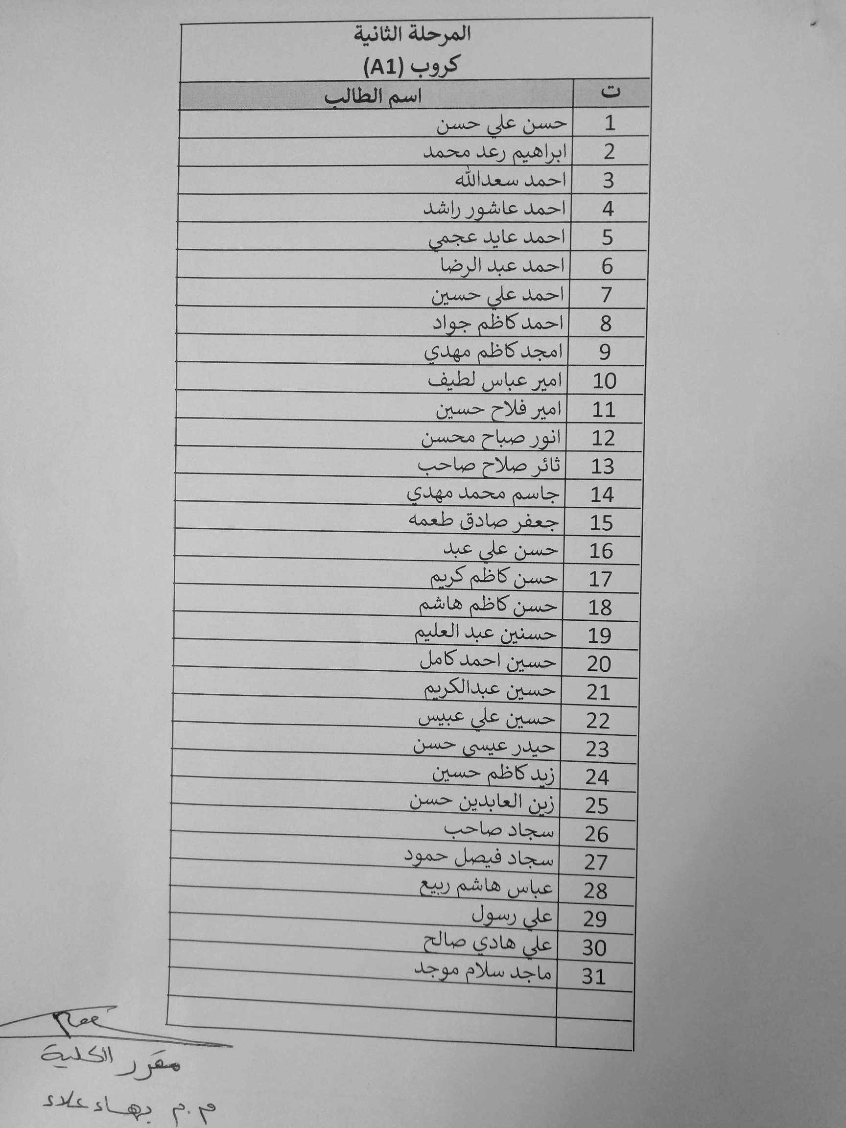 توزيع طلبة المرحلة الثانية على المجموعات في القاعات الدراسية / العام الدراسي ٢٠٢٠/٢٠١٩