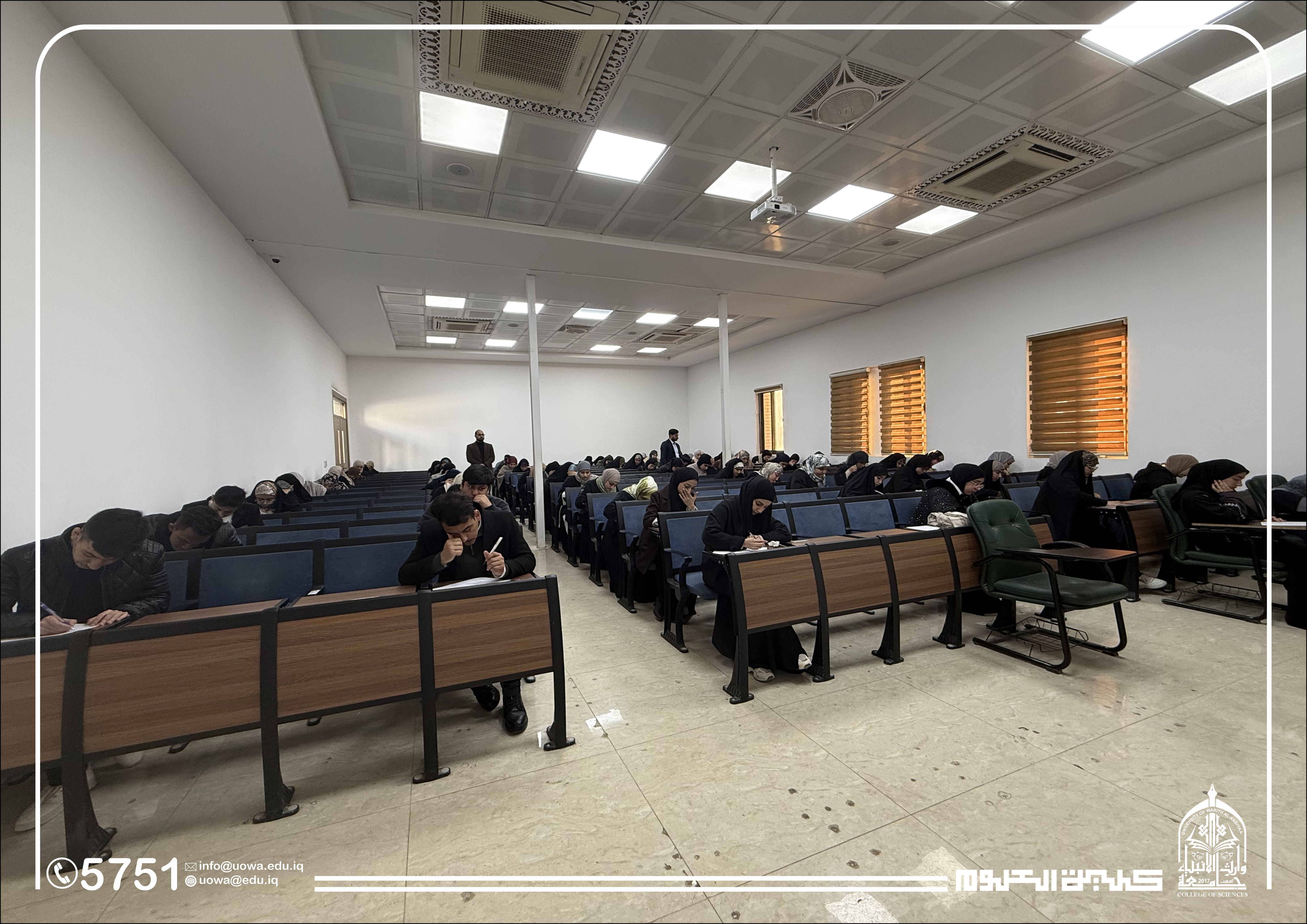 وسط أجواء أكاديمية ملؤها الانضباط والتفاؤل، باشرت كلية العلوم في جامعة وارث الأنبياء (عليه السلام) إجراء امتحانات الفصل الدراسي الأول (Midterm) لطلبة المرحلة الاولى لقسمي الفيزياء الطبية والادلة الجنائية.