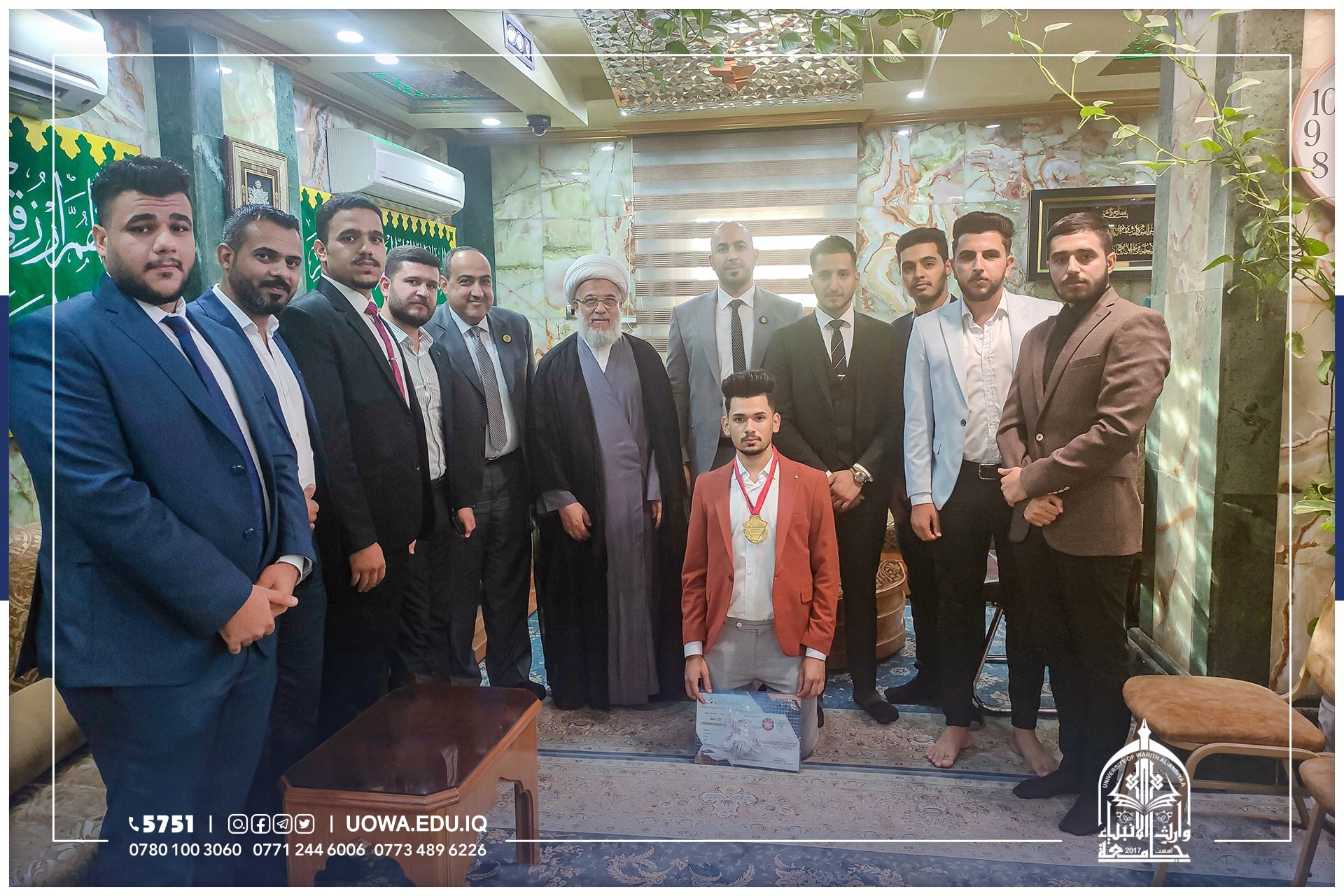 اذ ثمن سماحته ابتعاث الجامعة لعدد من الطلبة للتدريب الصيفي في جامعة مصر للعلوم والتكنلوجيا، واحراز الطالب (احمد وجيه) ذهبية بطولة اصفهان الدولية المقامة في ايران