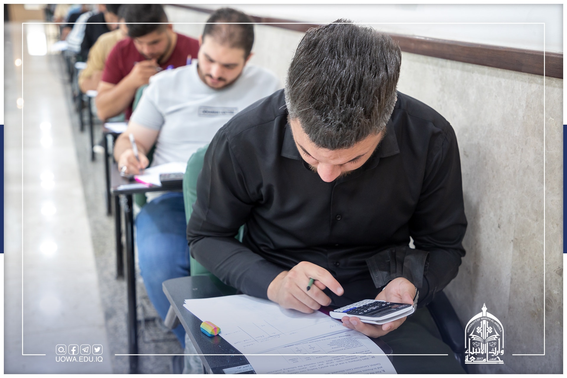 على مشارف الانتهاء، طلبة كليات وأقسام جامعة وارث الانبياء (عليه السلام) يؤدون امتحاناتهم النهائية بانسيابية عالية.امنياتنا لجميع طلبتنا الاعزاء بالموفقية والنجاح