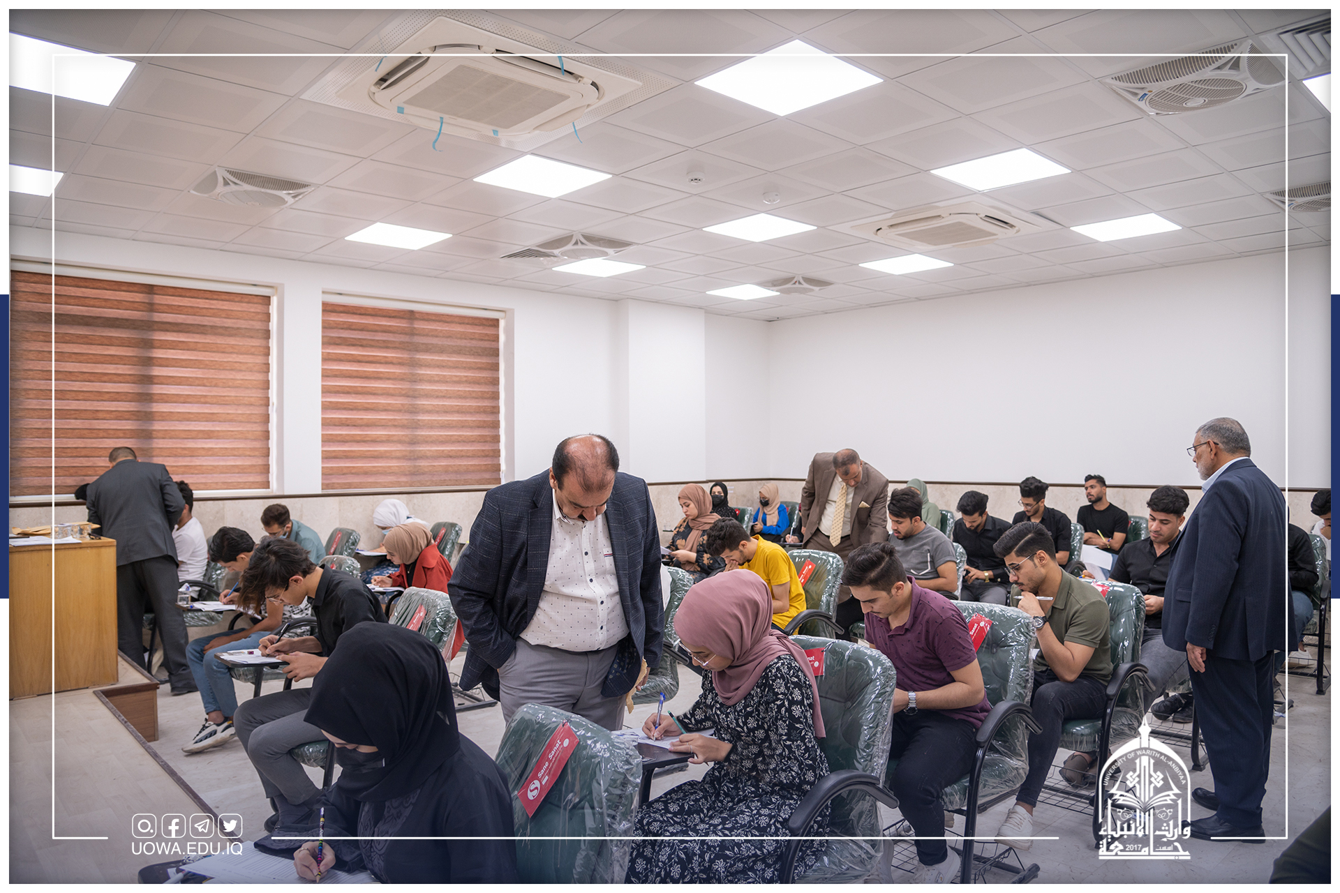 بانسيابية وتنظيم عالي، وبإشراف وزارة التعليم العالي والبحث العلمي، استمرار الامتحانات النهائية لطلبة كليات وأقسام جامعة وارث الانبياء(عليه السلام) أمنياتنا لجميع طلبتنا الاعزاء بالموفقية والنجاح