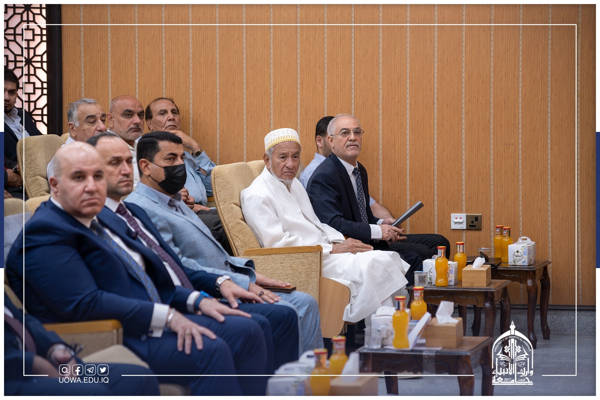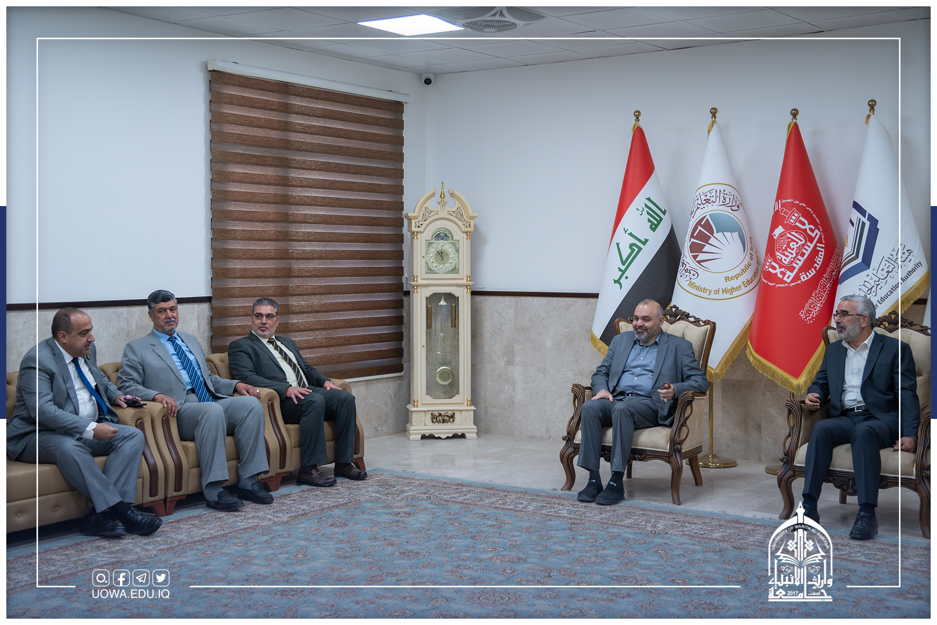 ورئاسة جامعة وارث الأنبياء (عليه السلام) متمثلة بكل من أ.د. ابراهيم الحياوي رئيس الجامعة، ومساعد رئيس الجامعة للشؤون العلمية أ.د. عباس الدعمي، عميدة الكلية النظيرة في جامعة القاهرة أ.د. عبير سعد زغلول.