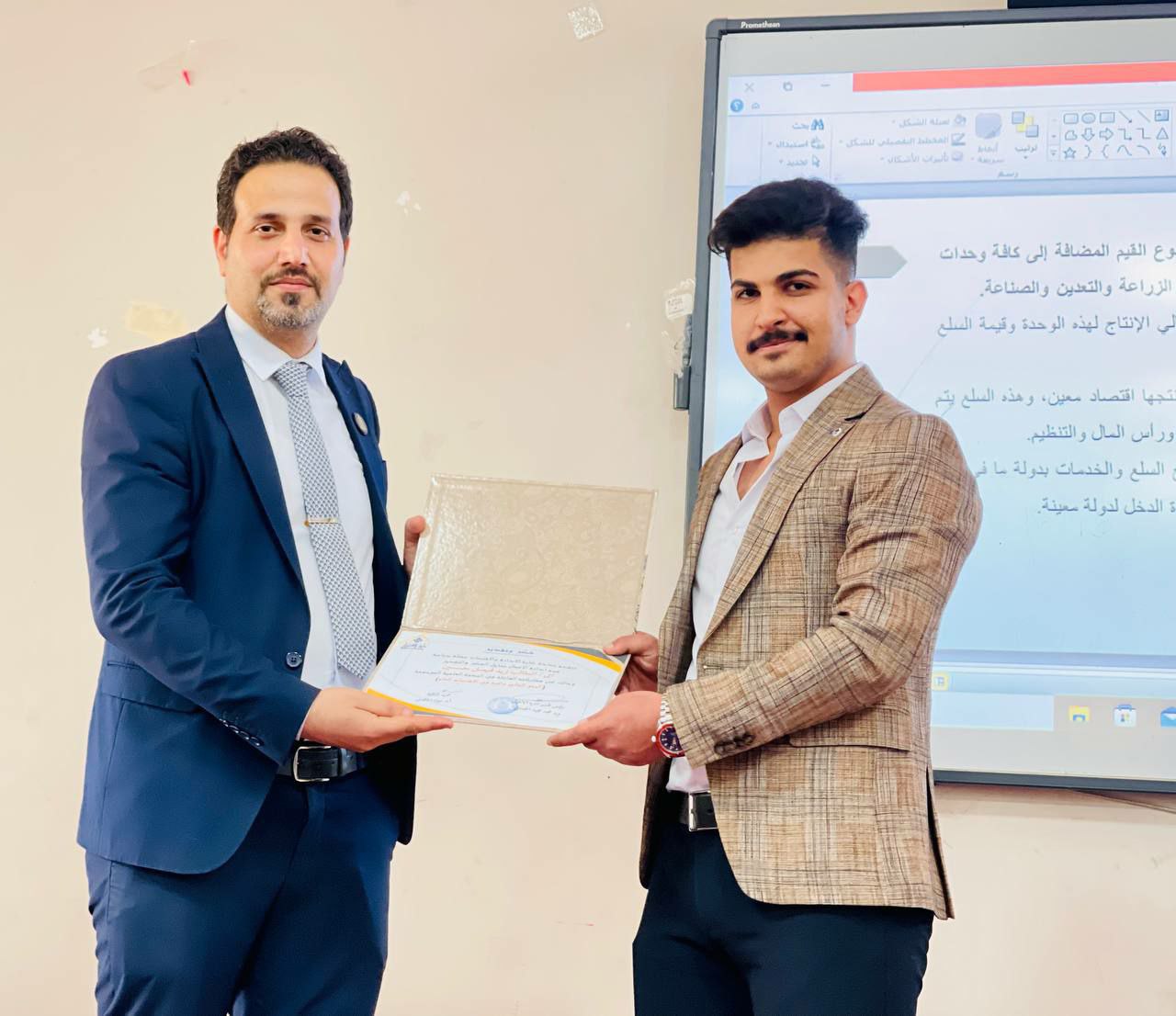 وقدم الندوة كل من الطلبة (امير هاني مزبان، زيد فيصل حسين) بإشراف رئيس القسم م.د محمد مجيد الحمداني، وبحضور مجموعة من الاساتذة وطلبة القسم الذين أشادوا بطريقة تقديمهم وتمكنهم من موضوع الندوة.