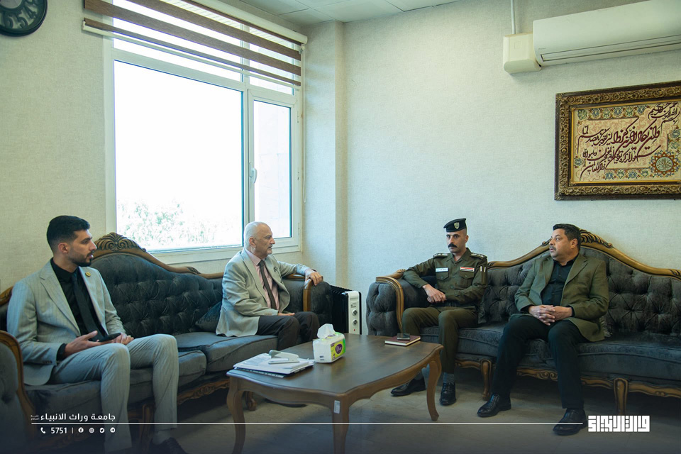 The Vice President for Administrative Affairs, Professor Dr. Nawfal Al-Araji, received a delegation from the Karbala Governorate Police Command headed by the Director of the Department for Martyrs and the Wounded.