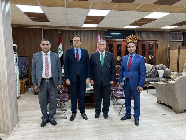 The delegation, consisting of Dr. Sabah Al-Jubouri, Dr. Hazem Al-Shibani, and Mr. Dhulfaqar Al-Jayyal, met with the President of the University of Baghdad, Professor Dr. Munir Al-Saadi, and the College of Political Science, meeting its dean. They expressed their readiness to provide academic and scientific support to the college.