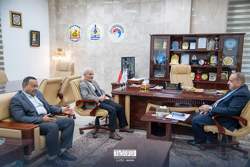 Mr. Ibrahim Al-Hayawi, the President of the University of Warith Al-Anbiyaa (peace be upon them), received a delegation from the Karbala Center for Studies and Research at the Holy Shrine of Imam Hussain. This visit comes within the framework of enhancing scientific cooperation between the two parties, in addition to discussing the university's participation in the "Eighth International Scientific Conference for the Visit of Arbaeen," which will take place with wide local and international participation at the end of August.