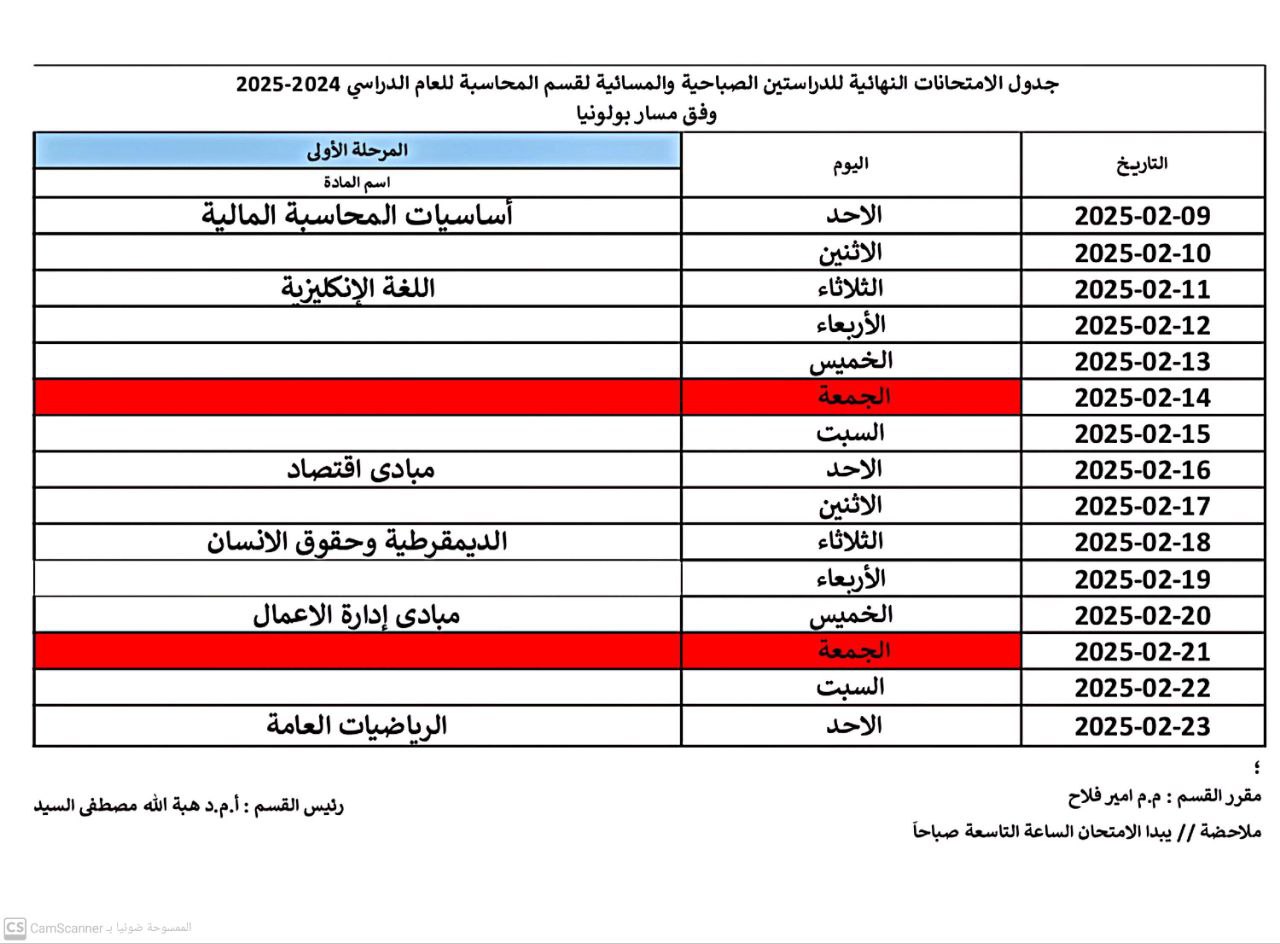 The exams for the academic year 2024-2025 at the Faculty of administration and economics, University of Warith Al-Anbiyaa, in accordance with the approved ministerial regulations and instructions, in an atmosphere dominated by discipline and organization, and with direct follow-up by the university presidency to ensure the efficient and smooth conduct of the examination process .