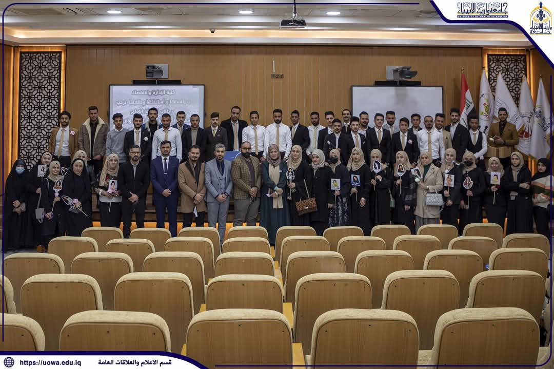 The College of Administration and Economics organized a student gathering for the first-year students to welcome them and help them prepare for the beginning of their university studies. The event was attended by prominent university figures, including the University President, Mr. Ibrahim Al-Hiyawi, his administrative assistant, Dr. Nofal, the Dean of the College of Administration and Economics, Dr. Awad Kazem Al-Khalidi, and a group of college professors. During the event, welcoming speeches were delivered, and important information and guidance were shared to assist the students in their academic journey.