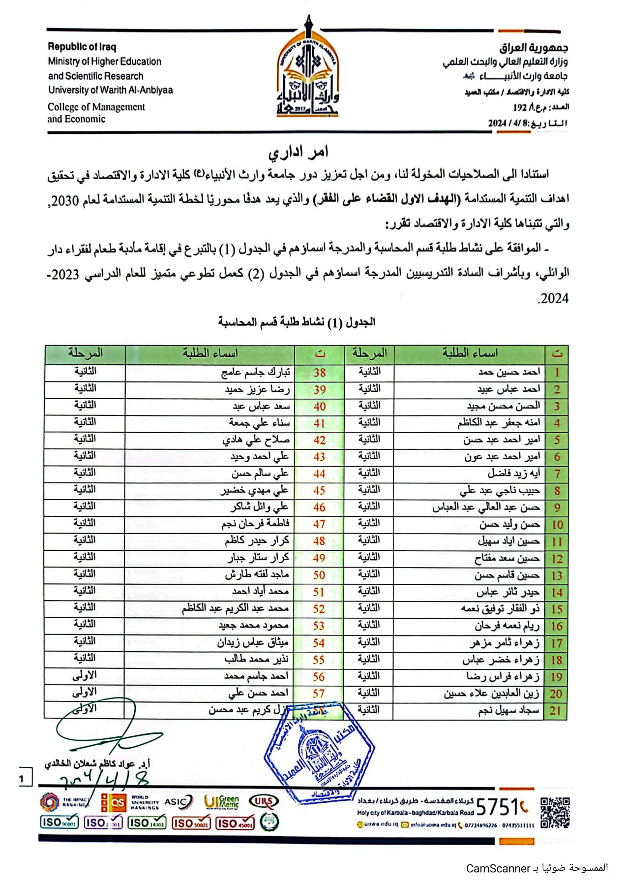 The College of Administration and Economics, along with its students, organized a food banquet for the poor at Al-Waeli House as part of their voluntary work and humanitarian efforts to support the community.
