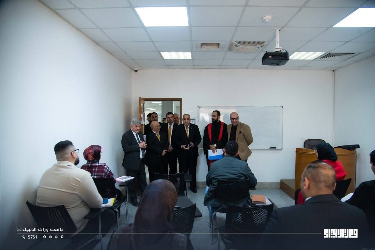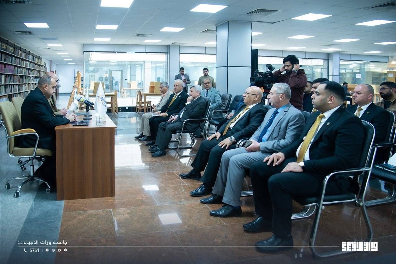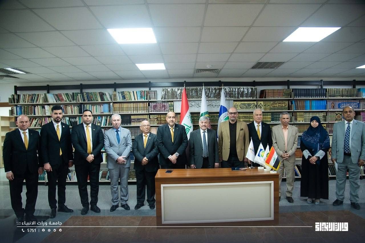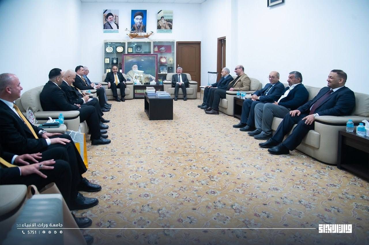 ​University of Warith Al-Anbiyaa Delegation Visits Al-Alamein Institute for Higher Education​A delegation from the University of Warith Al-Anbiyaa, led by the University President, Professor Dr. Ibrahim Al-Hayawi, and accompanied by several college deans, visited the Al-Alamein Institute for Higher Education. The meeting was attended by the Dean of the College of Administration and Economics, Professor Dr. Awad Al-Khalidi, the Vice-Dean, Dr. Hussein Matook, and the Head of Quality Assurance, Professor Dr. Talal Al-Jijawi.