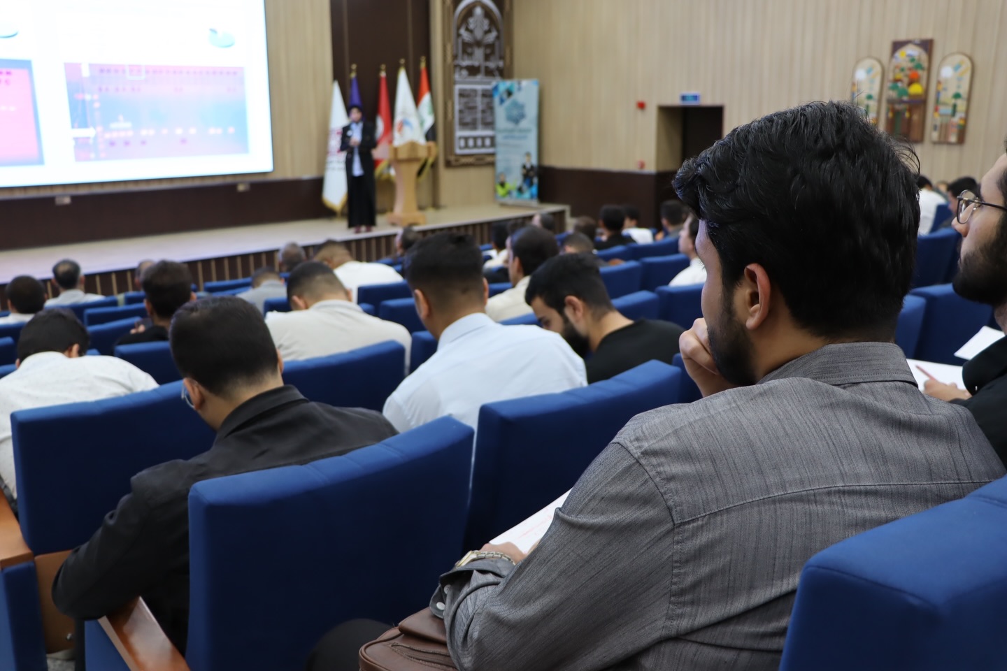 The College of Medicine at Warith Al-Anbiya University, in cooperation with the Iraqi Syndicate for Training and Development, held a scientific workshop entitled "Genetic Mutations in Type 1 Diabetes among Iraqi Patients." The workshop was attended by the Dean of the College of Medicine, Professor Dr. Ali Saadoun Al-Ghazi, along with a number of faculty members, staff, and students. Dr. Farah Ali Mahdi Al-Dabbagh presented the workshop, discussing the latest scientific findings related to genetic mutations affecting type 1 diabetes in Iraqi patients. She also reviewed research and applied aspects that contribute to understanding the mechanisms of the disease and improving diagnostic and treatment methods. This workshop is part of the college's efforts to support scientific research and enhance medical awareness about chronic and genetic diseases, in line with the Ministry of Higher Education and Scientific Research's directives to develop the medical field and serve the community.